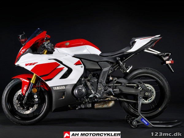 Yamahas racerarv lever videre i R7, hvor CP2-motorens rå kraft møder R1-elektronik og et finafstemt chassis – for en let, responsiv og medrivende køreoplevelse, der gør hver tur til et højdepunkt.
