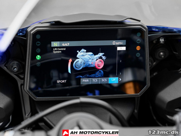 Avanceret R1-afledt elektronik får R7 op på et højere niveau. En ny 6-akset IMU arbejder sammen med YCC-T og tilpasselige YRC-kørselstrin for at levere præcis kontrol og maksimal tillid, mens traction, slide og lift control er finjusteret til både vej og bane – alt sammen præsenteret på en 5" TFT-farveskærm.