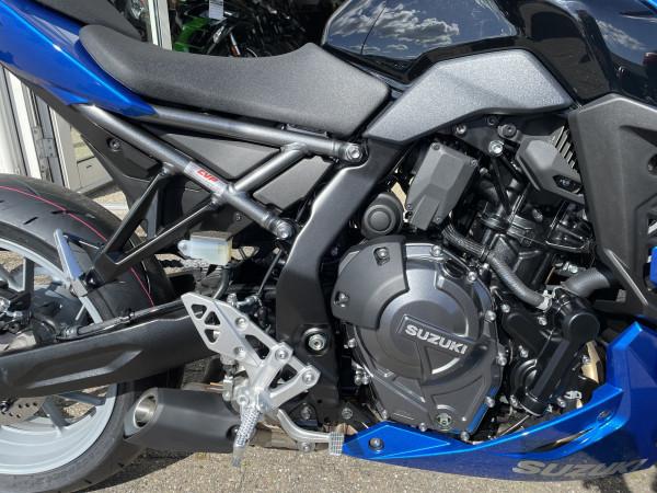 SUZUKIs helt nye parallel twin er et mesterværk, som sætter nye standarder i klassen. Motoren er udstyret med dobbelt overliggende knastaksler samt to tandhjulsdrevne balanceaksler.