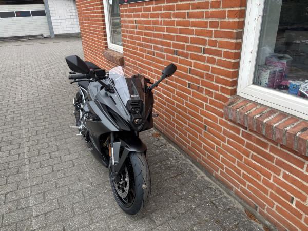 ABS bremser, TCS (traction control), kørecomputer, gearindikator, startspærre, fuldkåbe, quickshift, LED baglygte, LED forlygte, A2 kørekort muligt, 5 Års garanti, Finanseres med/uden udbetaling, USD Forgaffel, Vi tager gerne din brugte motorcykel i bytte, Vi tilbyder et godt finanseringstilbud i samarbejde med Mc Finans - Santander.