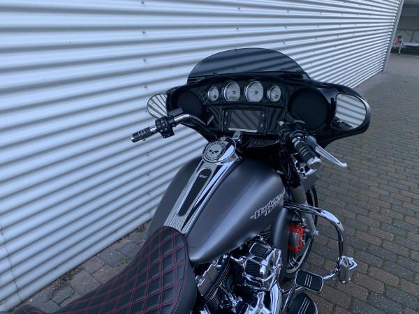ABS-bremser, Cruise Control, den store skærm med Navigation, musikanlæg /Audio / USB, elektronisk fartpilot /cruise control. Cobra Slip-on udstødning. Cyklen er monteret med motor/taskebøjler, mørke led-blink for som også fungerer som led-kørelys, mørke led-blink bag (blink/stop/kørelys 3i1) led-forlygte, mørk kåbeglas. Lower Farrings i cyklens farve til montering på motorbøjle medfølger. Step-up sæde med røde syninger, røde bremsekaliber og tændkabler.