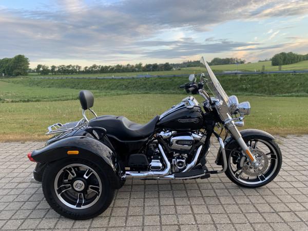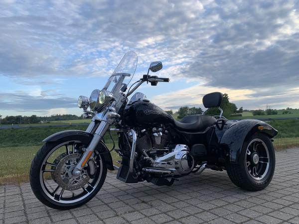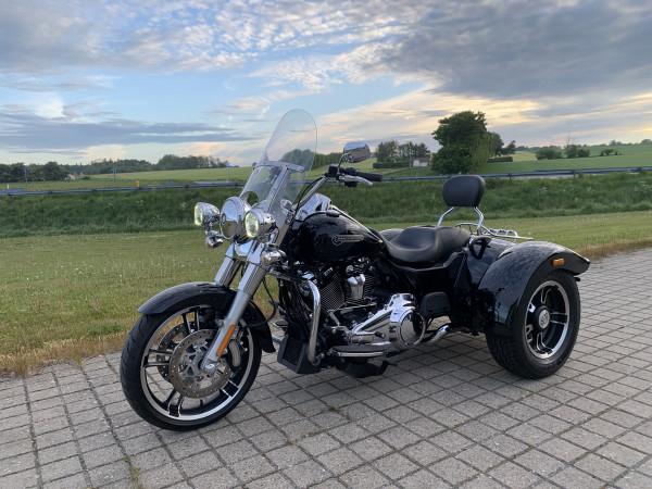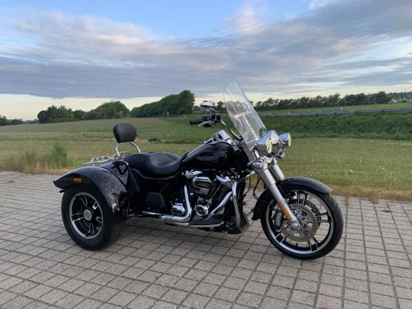 Harley FLRT Freewheeler sjælden udbudt.model der ikke hænger på alle gadehjørner. Denne model er med den nye 107" M8 Motor.