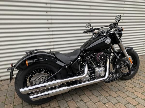 190kmt / 5.2Sek / 79HK / 132NM / 1690ccm. ABS Bremser. Blanksort, lædertasker, motorbøjle, Led-baglygter. Meget original FLS Softail Slim med super lav kilometertal :-).