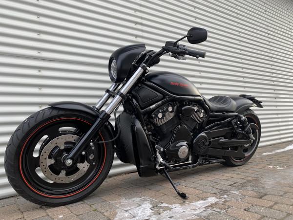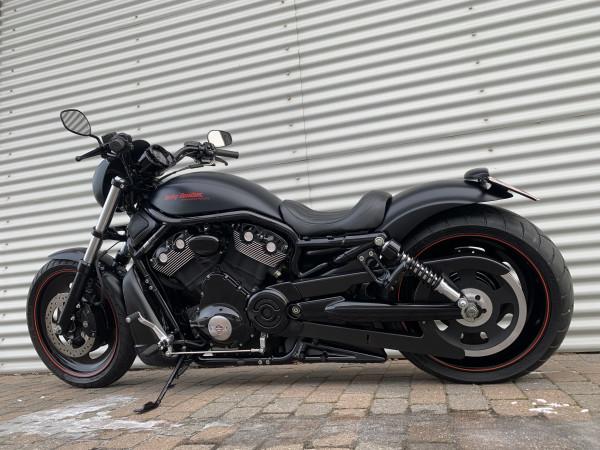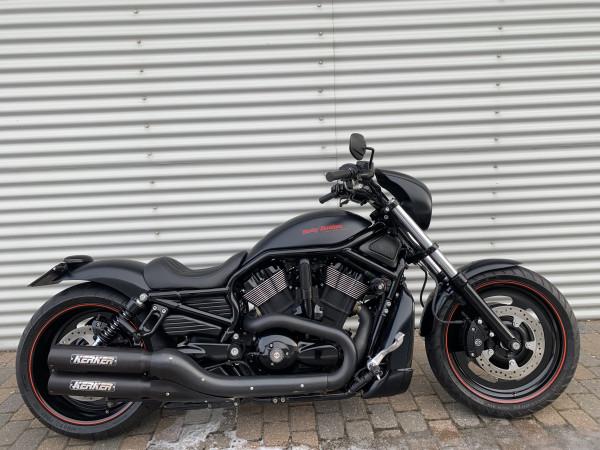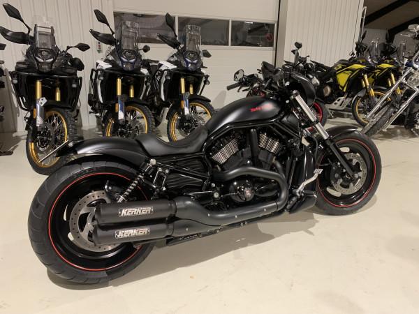 5HD-europa model. Night Rod Special i Matsort. Kerker Slip-on udstødning, 260 bagdæk og custom kort bagskærm, lidt sænket, mørk daymaker led-forlygte + led-blink under styr, led baglys & blink. Cyklen står rigtig flot og velholdt. Bør ses og prøves.
