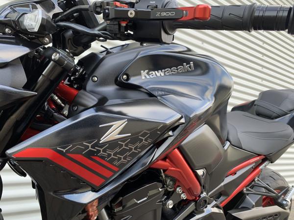 Z900 - aggressiv Z stil i farven Metallic Graphenesteel Red (BK2), som tager afsæt i det japanske Sugomi designkoncept. Med Z900 får du udover fortræffelige køreregenskaber, en lang række avancerede funktioner