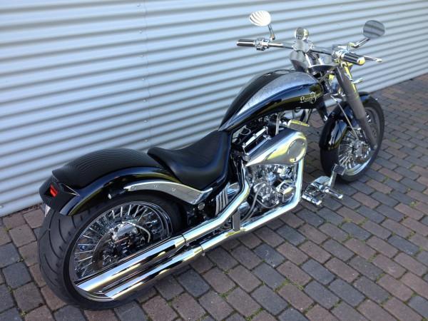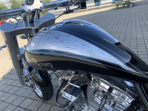 Cyklen står med åbne udstødning, større spjældhus åbning og er trimmet ind til det ved Lauge Jensen, dette giver den 1800ccm Ultima motor den helt lyd og performance 130NM ved 3100 omdrejninger.