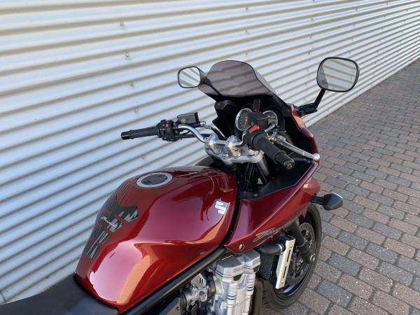 Varmehåndtag, gearindikator, tonet vindskærm, beslag for Givi Topbox. cyklen er sænket 25mm men kan også leveres standard. Leveres med IXIL sort slip-on udstødning E-godkendt eller den originale suzuki potte (se billederne).