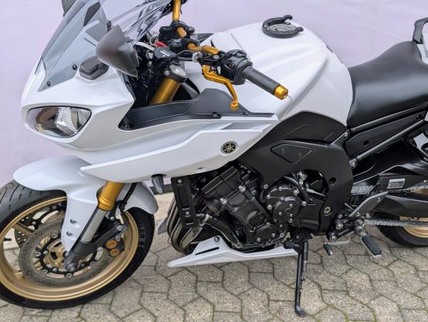 Fin FZ-8 med masser af udstyr, Rizoma styr i guld, Puig greb i guld, Puig br.væskebeholder i guld, Puig styrender i guld, SW Motech risers, Givi stort kåbeglas(originalt medfølger)indfarvet original sædeskal(bagsæde medfølger), Cobra udstødning(e-mærket), Yamaha bløde sidetasker, Yamaha topbox, SW Motech tanktaske.